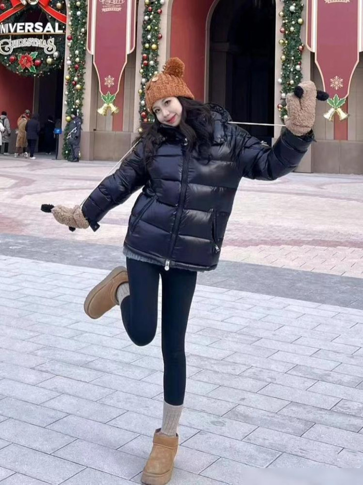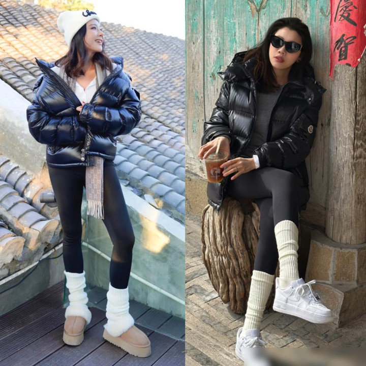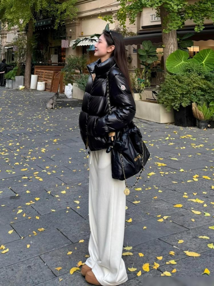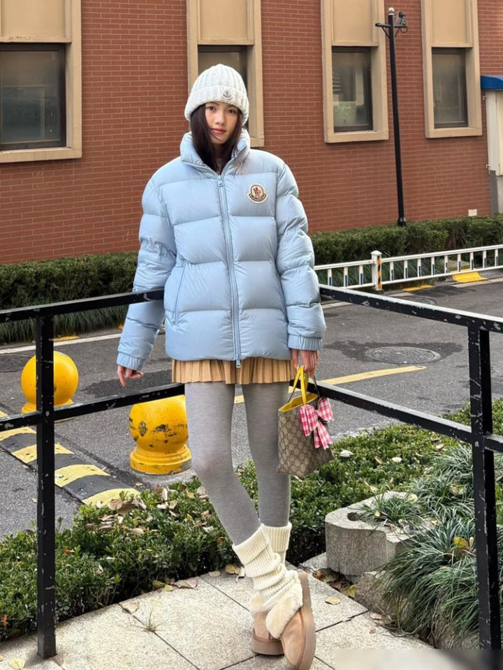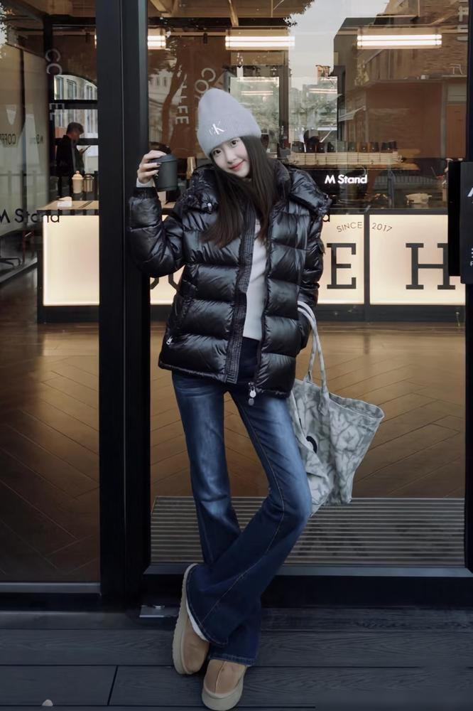 不过也别总配运动鞋。试试雪地靴,暖和又有点慵懒的感觉。或者配双长筒靴,特别显腿细,个子不高的也能试试看。